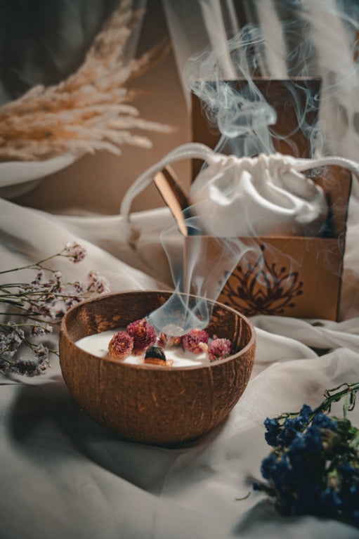 Both products serve many purposes. They help change the atmosphere of your space through the scents of the candles and the glow of the Mystic Glow shells, which automatically bring you into a relaxing mood. This can aid in productive activities like meditation, exercise, journaling, listening to relaxing music, relieving insomnia and stress, boosting creativity, and adding a bohemian look to your space, backyard, or wherever you choose as your sanctuary